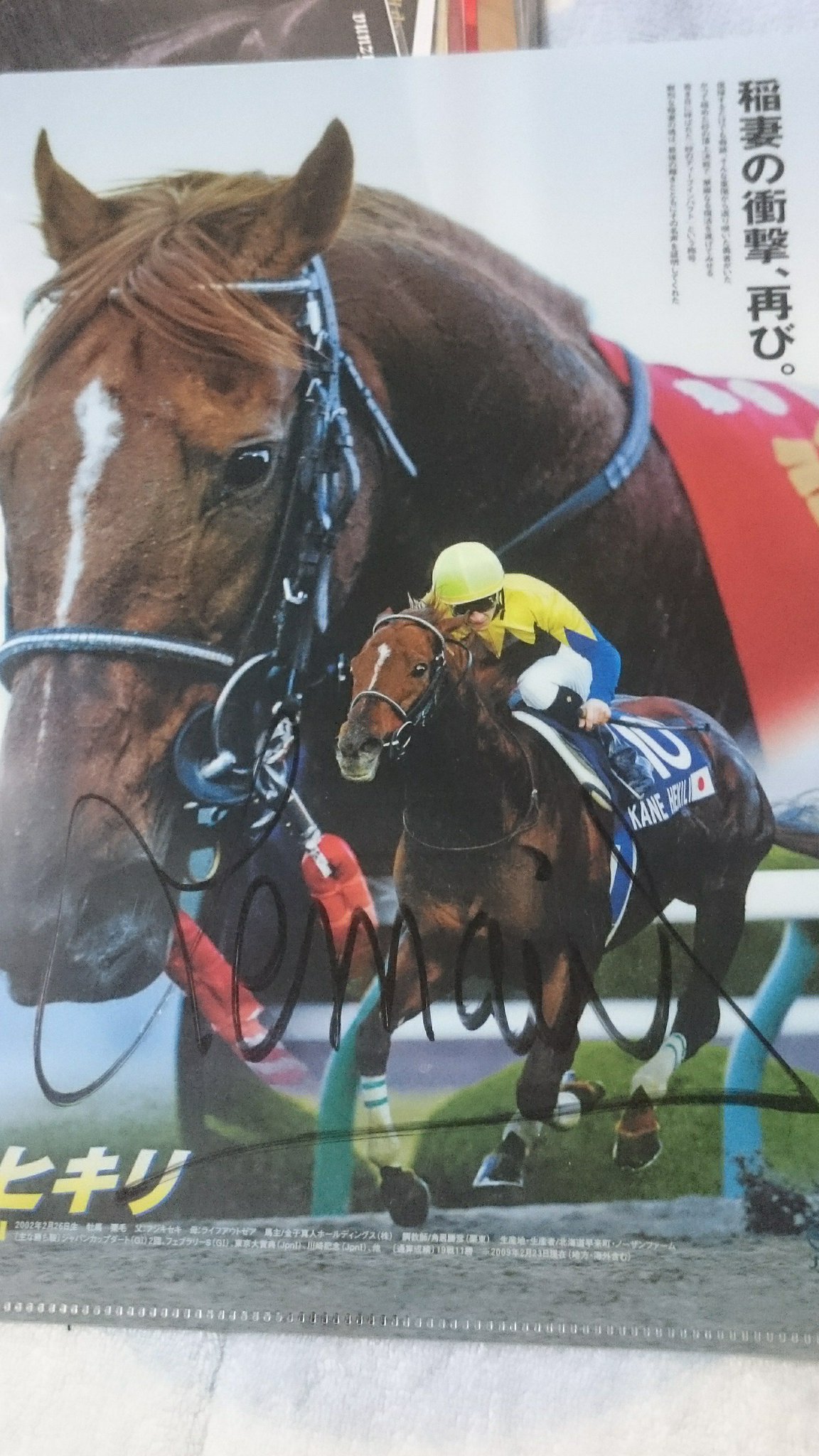 @aki0621saku前にもツイートしたけど。今日の神騎乗連発!C.ルメールとカネヒキリ!サインも入ってます(≧▽≦)